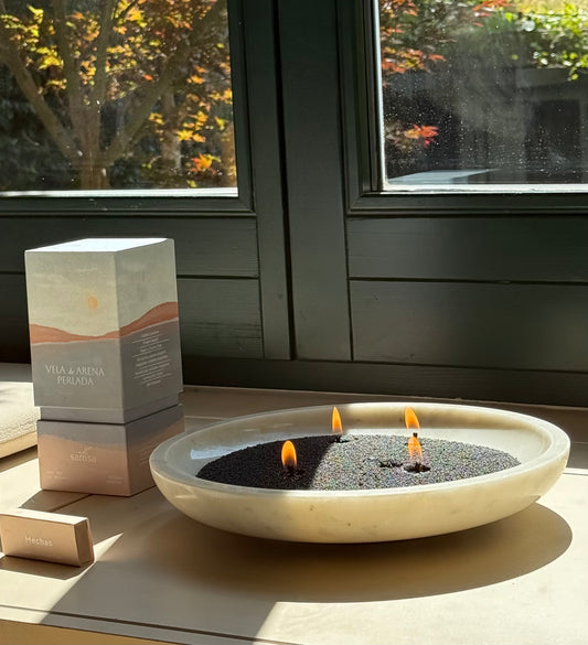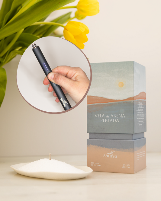 Kit Caja Deluxe Vela de Arena Perlada + Encendedor Eléctrico
