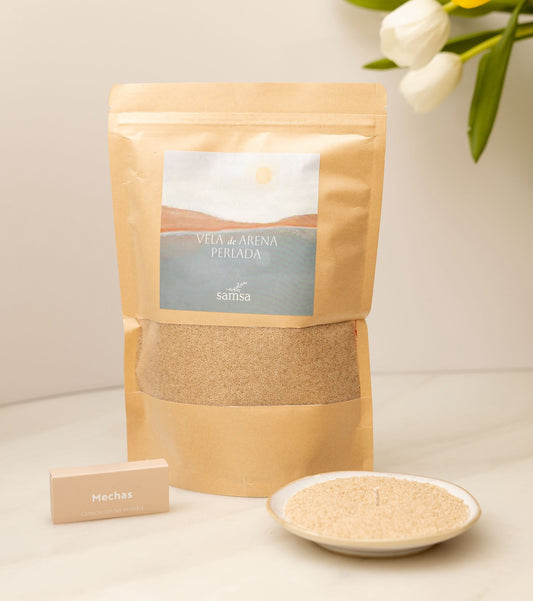 Kit de Recarga Vela de Arena | Cera Perlada 500g + 30 Mechas